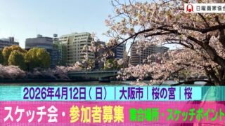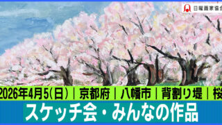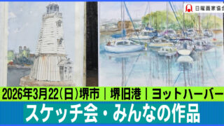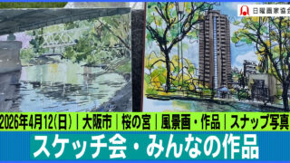 日曜画家協会のホームページへようこそ!スケッチ会の開催(月3回)、イベント、水彩画教室・講習会、作品展など、大阪を拠点に活発に活動している絵画グループです。絵を描いてみたい方、絵に興味のある方、絵を描くのが趣味の方、絵の仲間を作りたい方、初心者の方も大歓迎、どなたでもご入会いただけます。