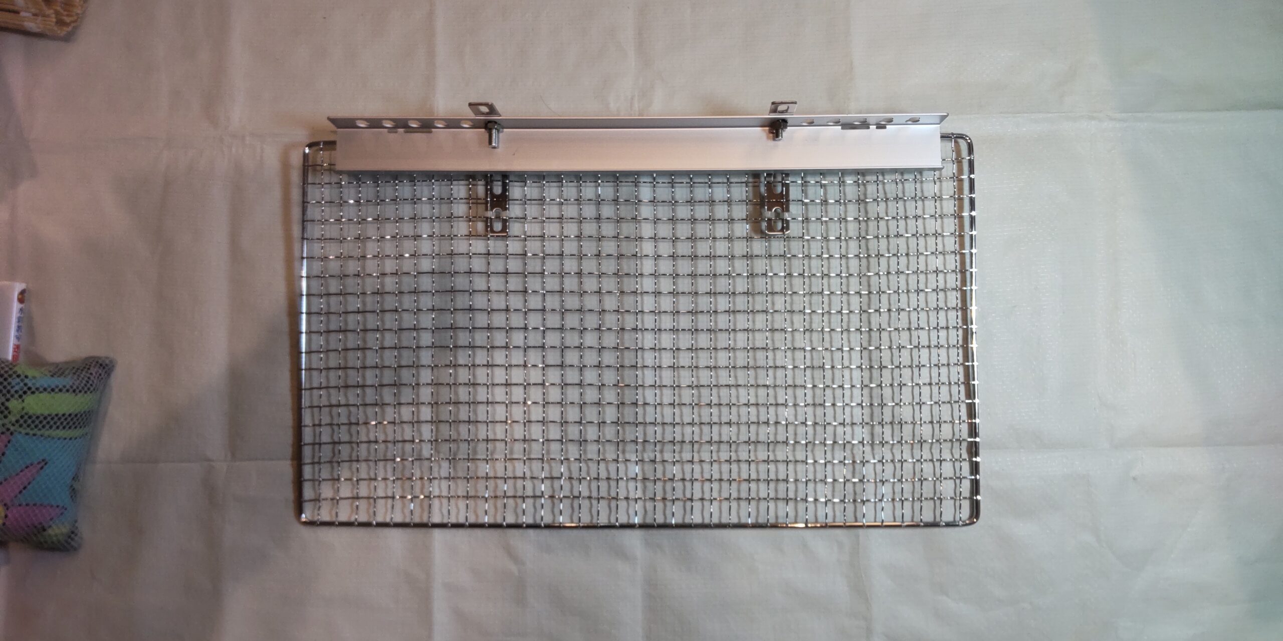 バーベキューなどに使う金網を折り曲げて作成。シンプルなのがgoodです!