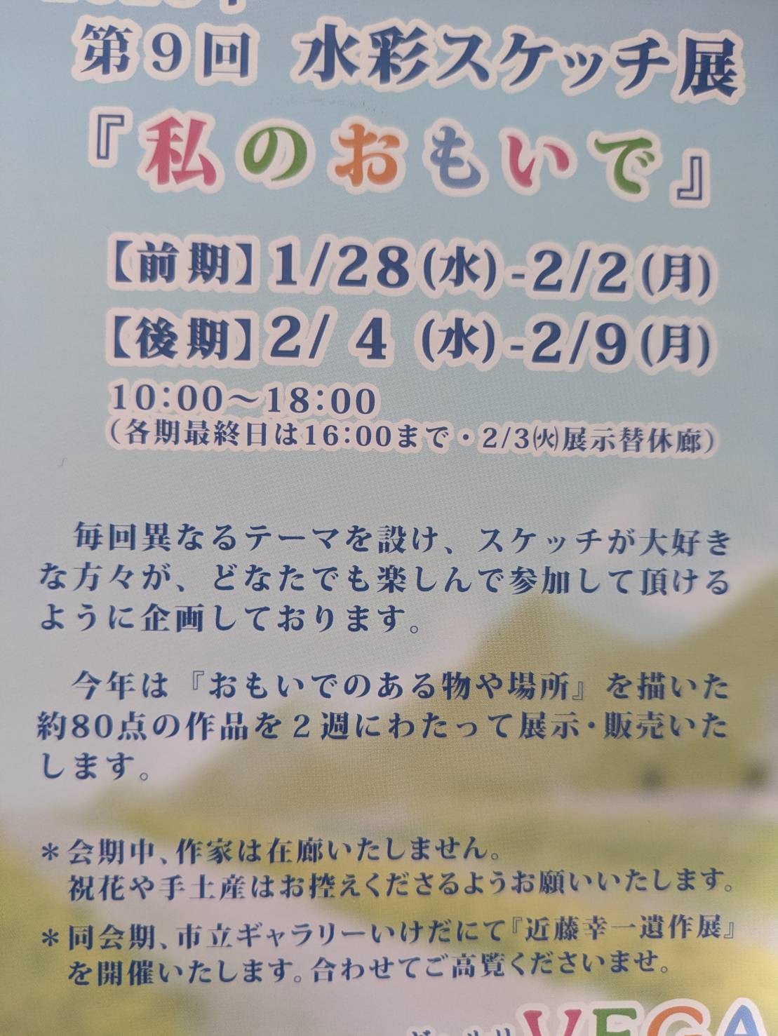 - 第9回 水彩スケッチ展「私のおもいで」|(前期)2026年1月28日(水)~2026年2月2日(日)(後期)2026年2月4日(水)~2026年2月9日(月)