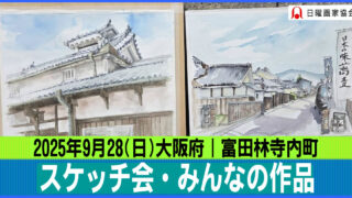 スケッチ会|風景画・作品|スナップ写真 大阪府|富田林市|富田林寺内町|重要伝統的建造物群保存地区|2025年9月|風景画・作品|スナップ写真 大阪府|富田林市|富田林寺内町|重要伝統的建造物群保存地区|2025年9月|風景画・作品|スナップ写真秋晴れの朝、でもちょっと暑かった。富田林寺内町へ会員45名、体験2名が集合。寺内町は江戸時代の面影を残す町。その家並みや寺院を描きました。... スケッチ会|風景画・作品|スナップ写真