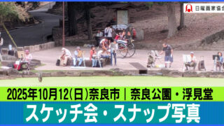 スケッチ会|風景画・作品|スナップ写真 奈良市|奈良公園・浮見堂|2025年10月|風景画・作品|スナップ写真 奈良市|奈良公園・浮見堂|2025年10月|風景画・作品|スナップ写真奈良浮見堂での写生会でした。大泉で雨に祟られたので、今回は大丈夫と何の根拠もない思いで皆様も参加されたのでは?浮見堂まで遠かったのでバスを利用した方、歩いてきた方 様々で... スケッチ会|風景画・作品|スナップ写真