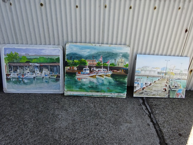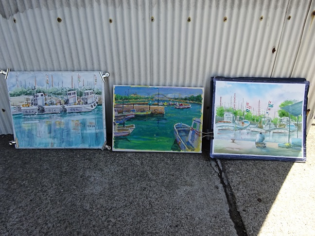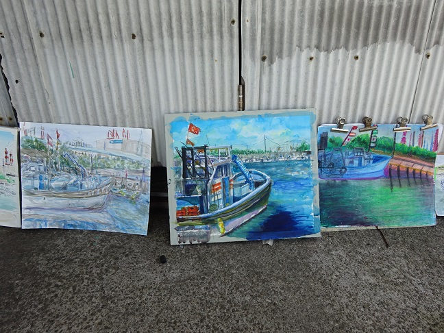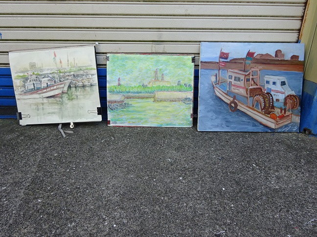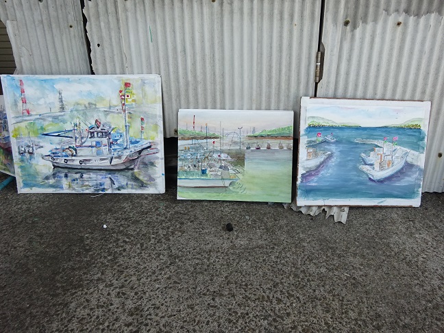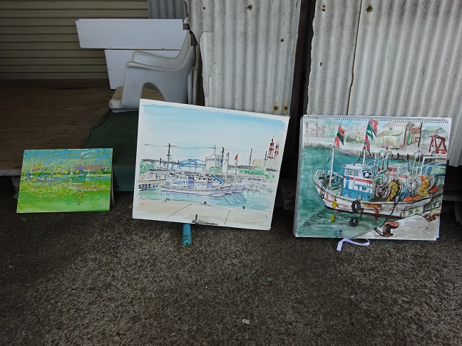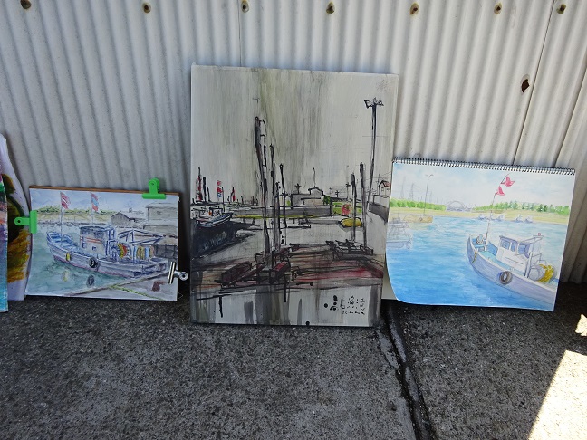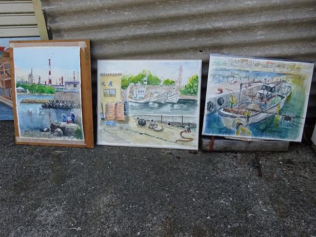 2022年5月29日(日)の日曜画家協会お出かけスケッチ会は「高石漁港」でした。こぢんまりとした静かな漁港で、日陰を探しながらスケッチポイントを見つけて描き始めました。漁船や漁具そして、遠景の臨海工業地帯等を入れながら それぞれ、構図を工夫していました。