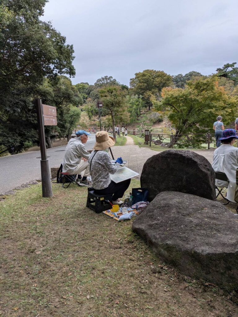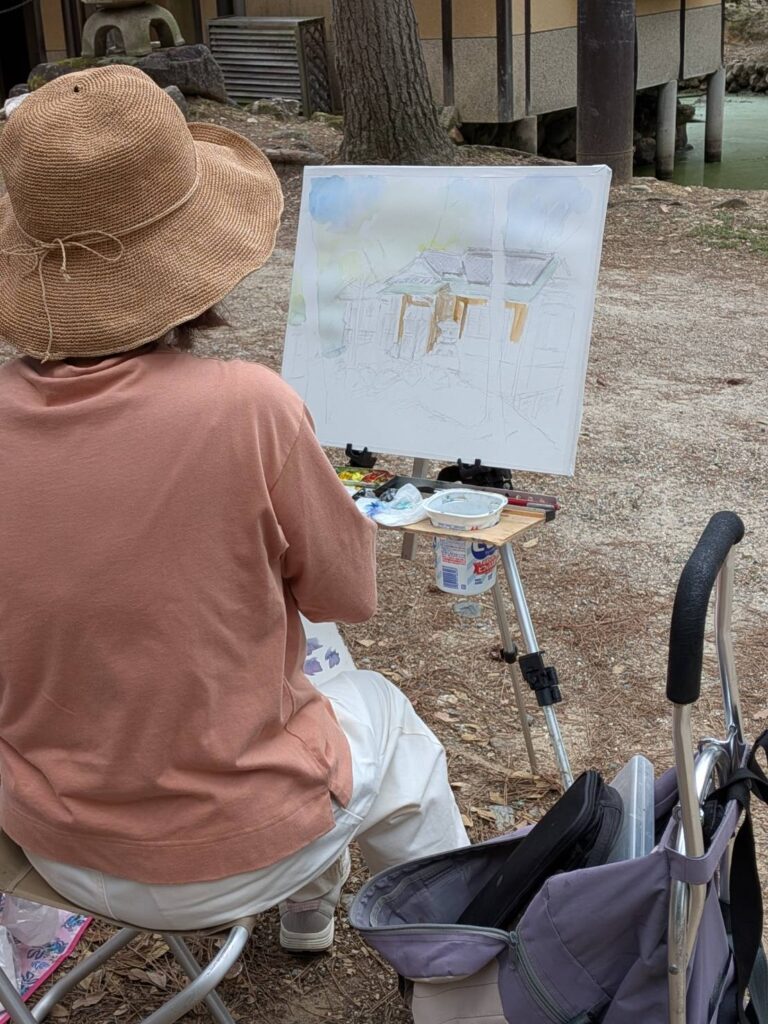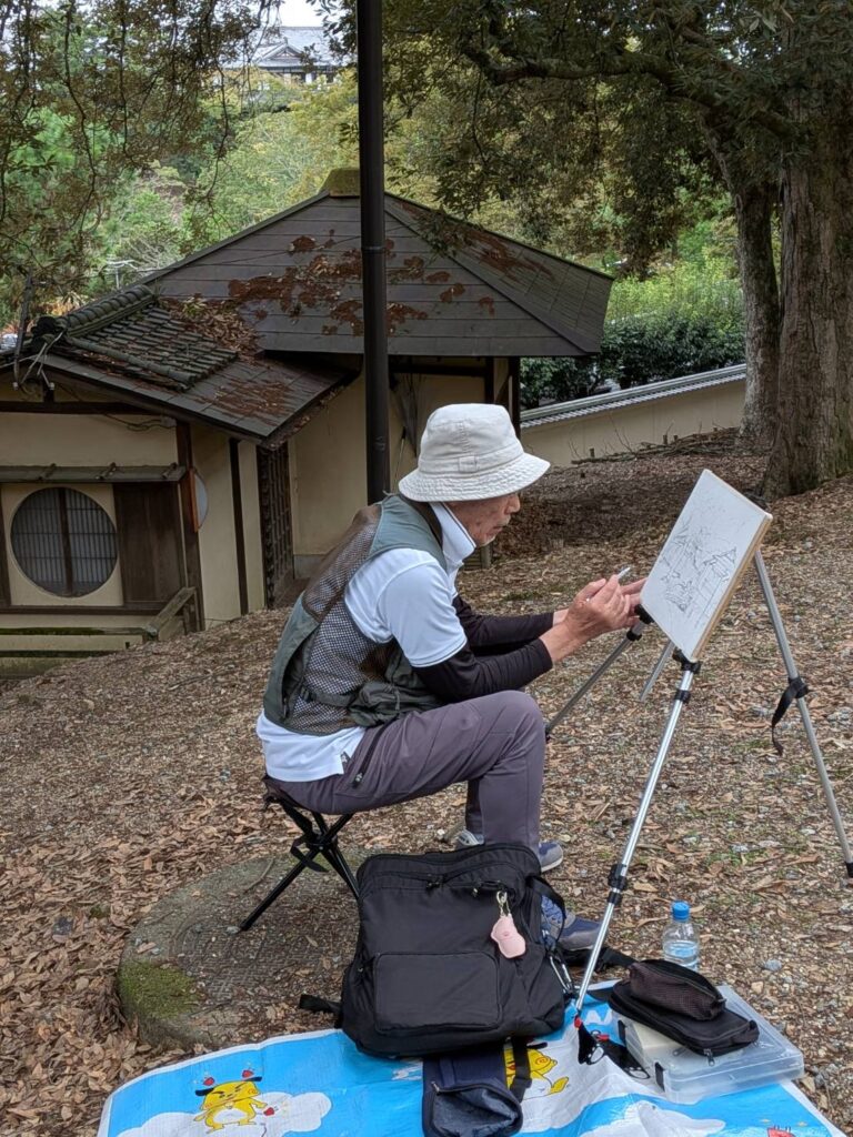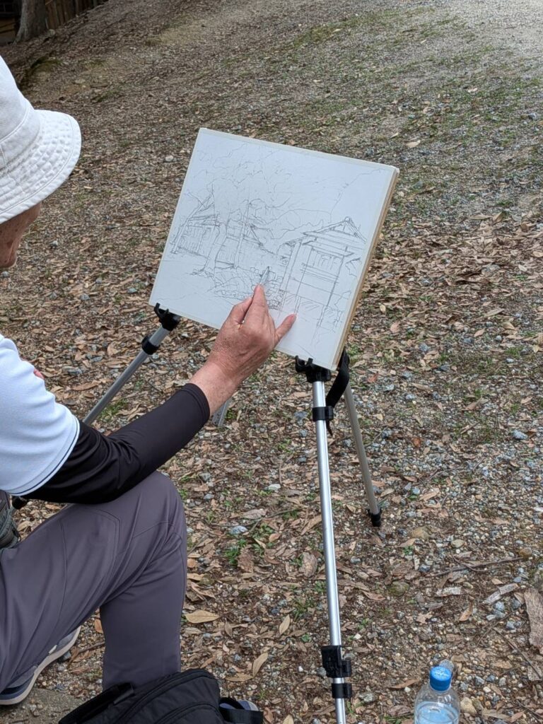 奈良浮見堂での写生会でした。大泉で雨に祟られたので、今回は大丈夫と何の根拠もない思いで皆様も参加されたのでは?浮見堂まで遠かったのでバスを利用した方、歩いてきた方 様々で10時に遅れた方もいましたが体験者1名、総勢40名の参加でした。11:30分頃、雨の襲来で突如解散の運びとなりました。ちなみにアドバイザーさんは雨男でした。残念、次回こそ! お一人新しく入会されました。みなさまお疲れさまでした