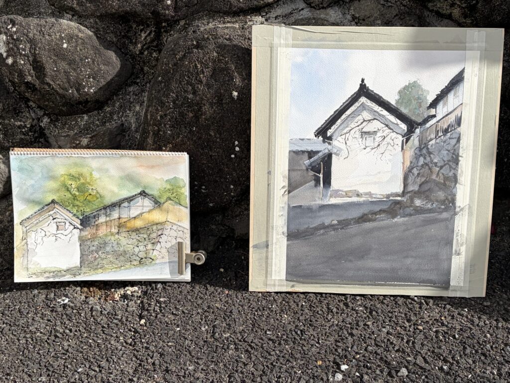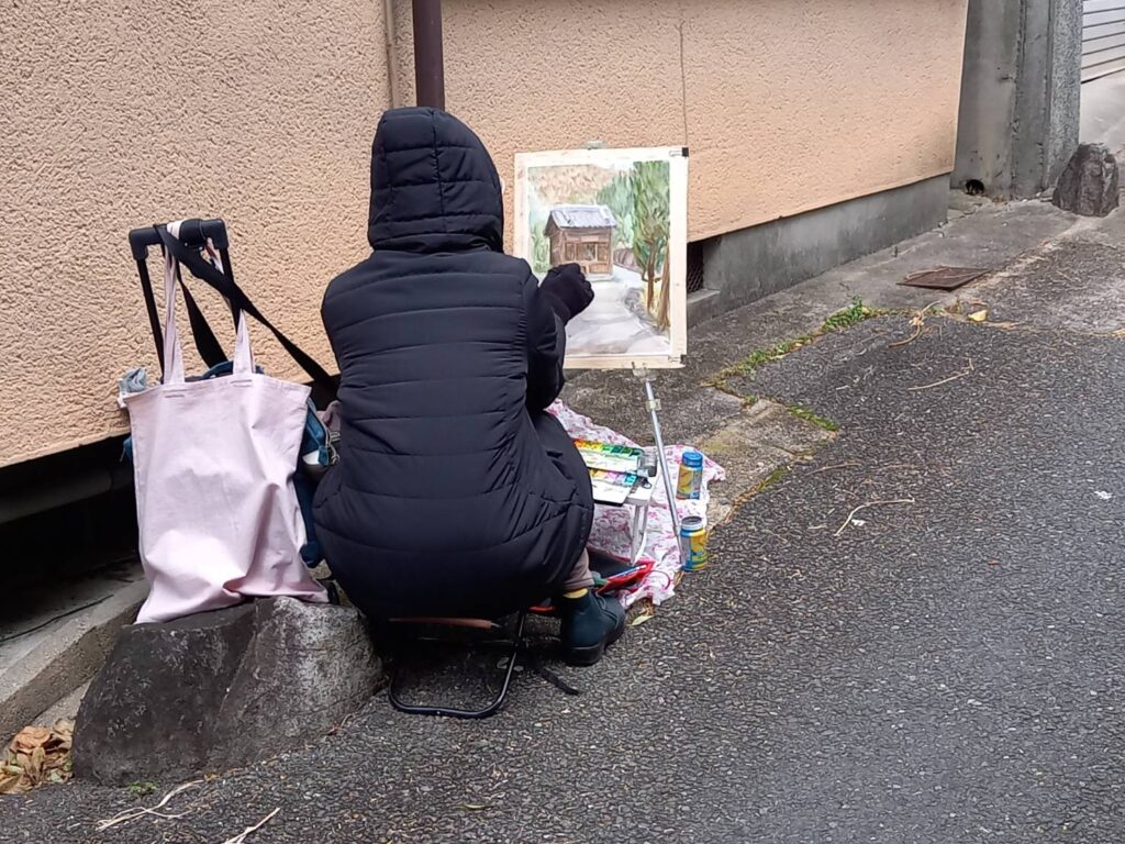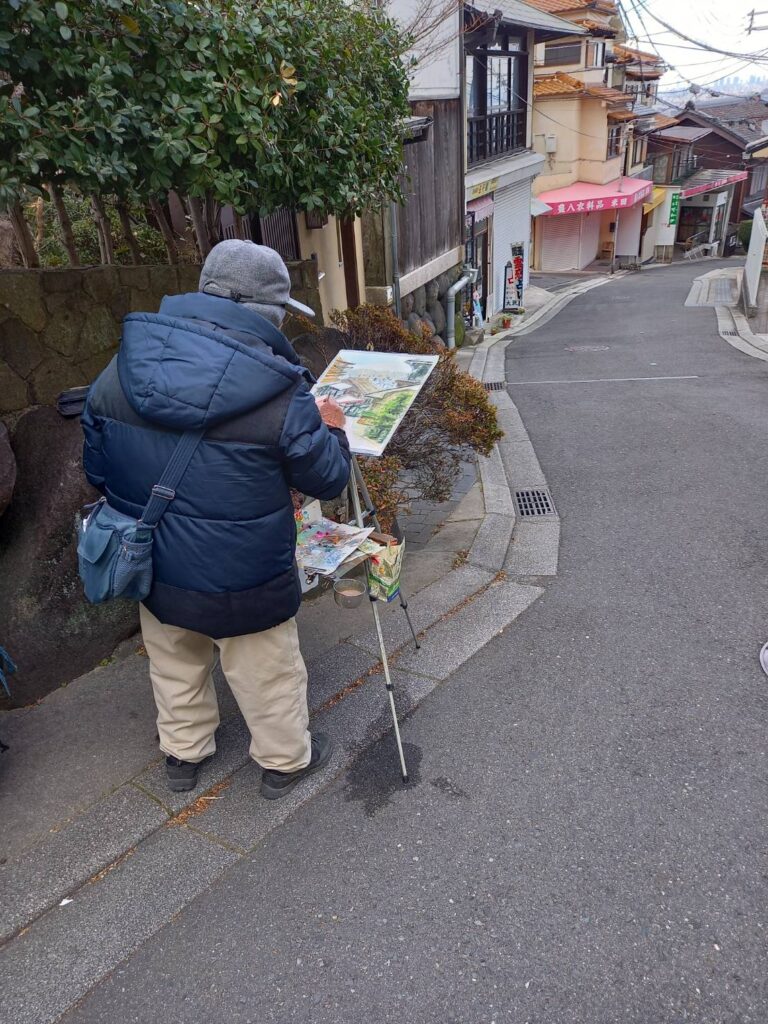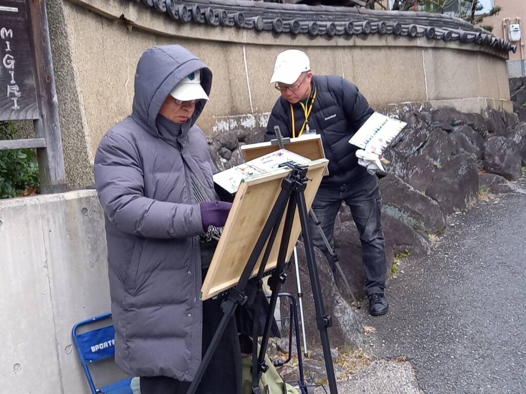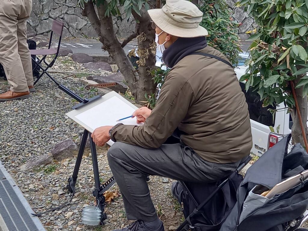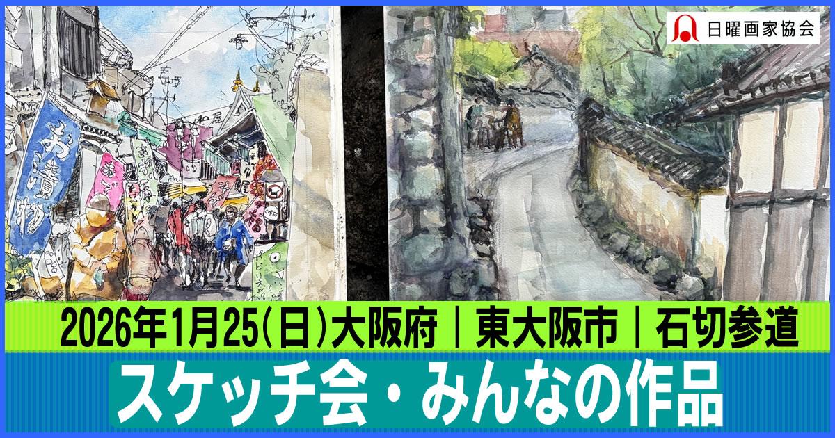 大阪府|東大阪市|石切参道|2026年1月|風景画・作品|スナップ写真 スケッチ会|風景画・作品|スナップ写真 2026.01.25 大阪府|東大阪市|石切参道|2026年1月|風景画・作品|スナップ写真 1月25日(日)東大阪市の石切参道の写生会は25名の参加者があり、皆様目的の場所で寒さと闘いながら描かれていました。2時からの講評会では、粉雪が舞って記憶に残る写生会になりました。参加者:25名アドバイザー 山本学当番 林賢吾/岩田孝子(記) みんなの作品 写真撮影 林賢吾 スナップ写真 写真撮影 山本学