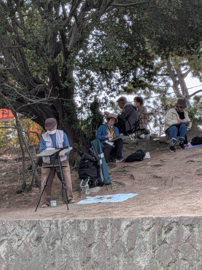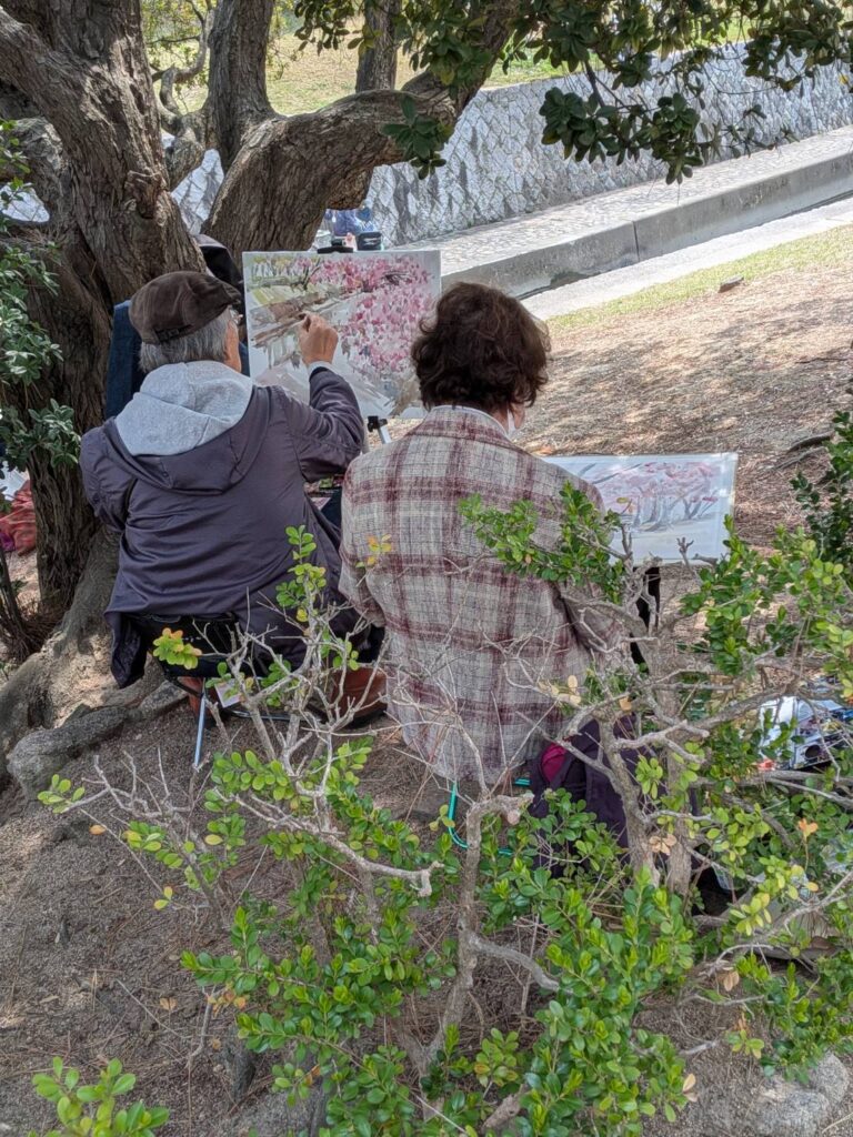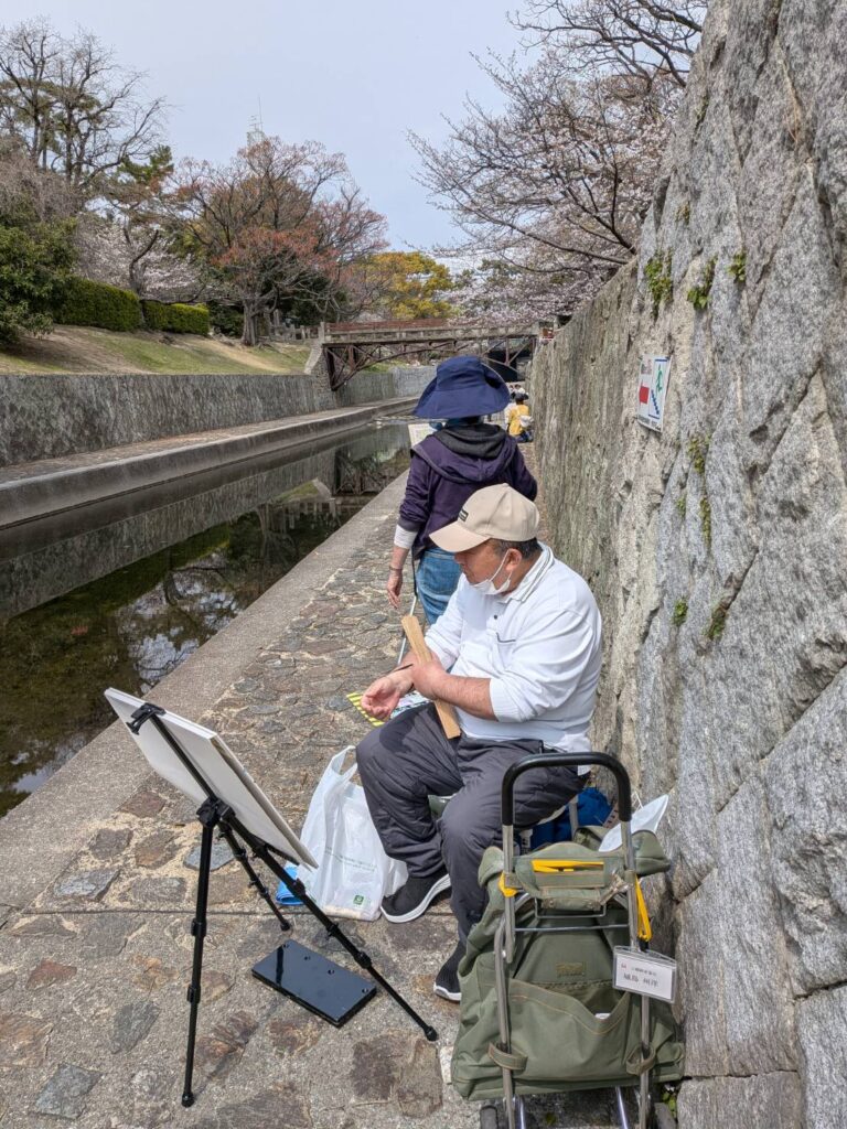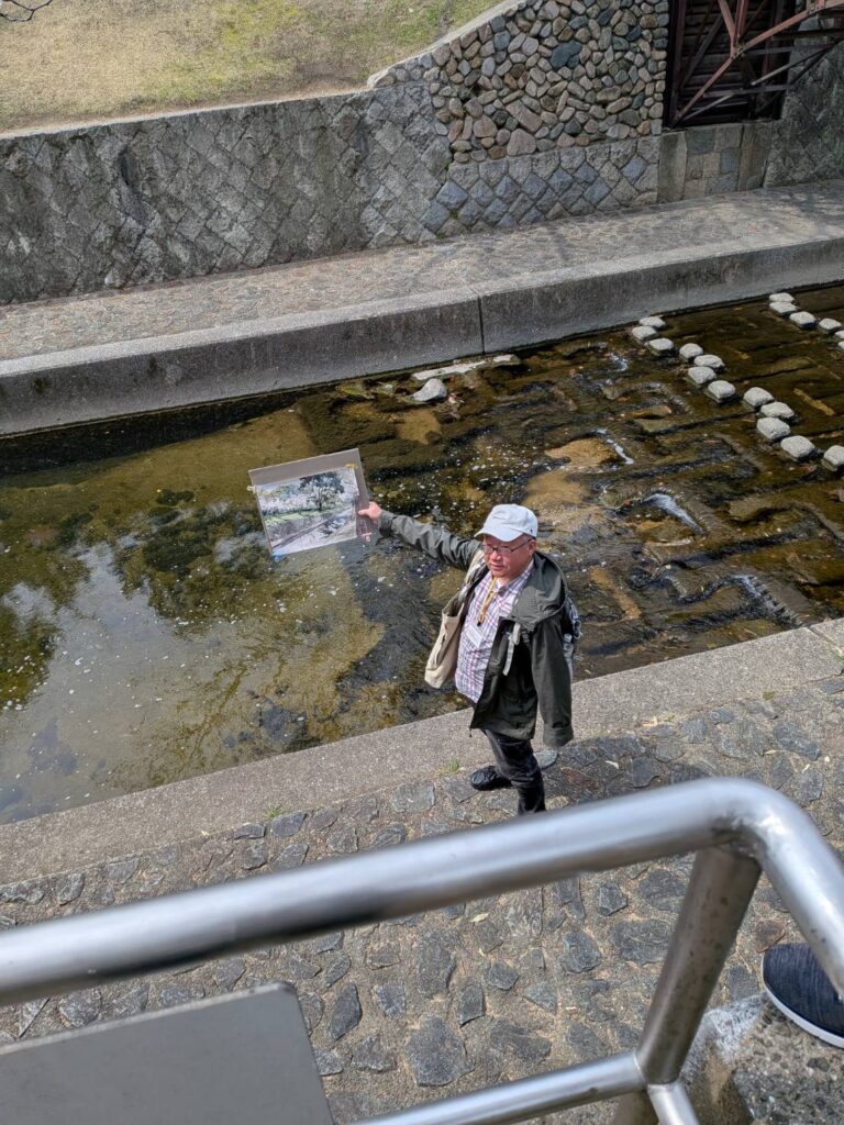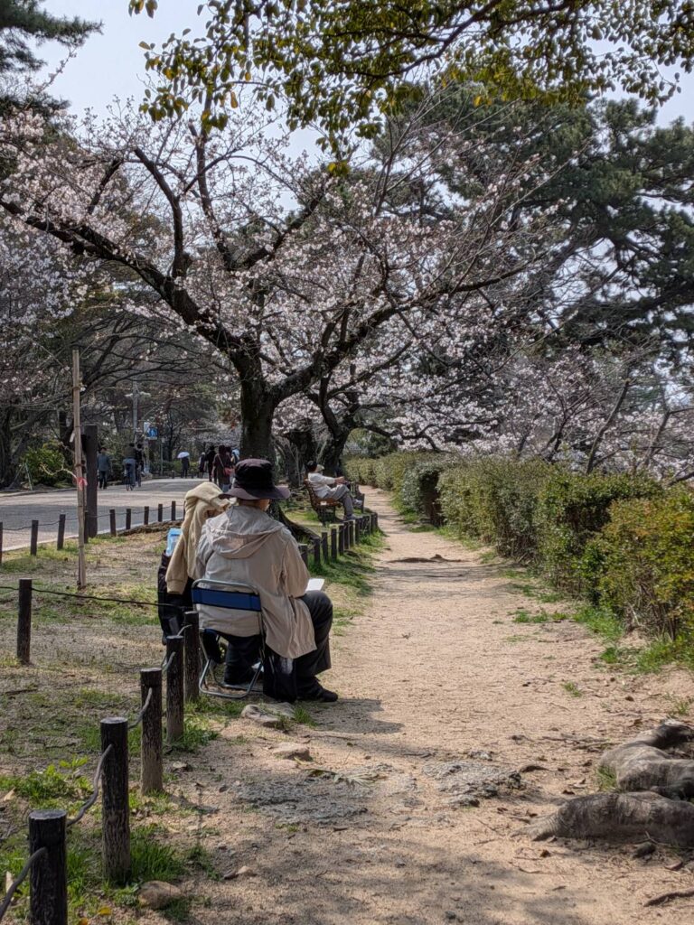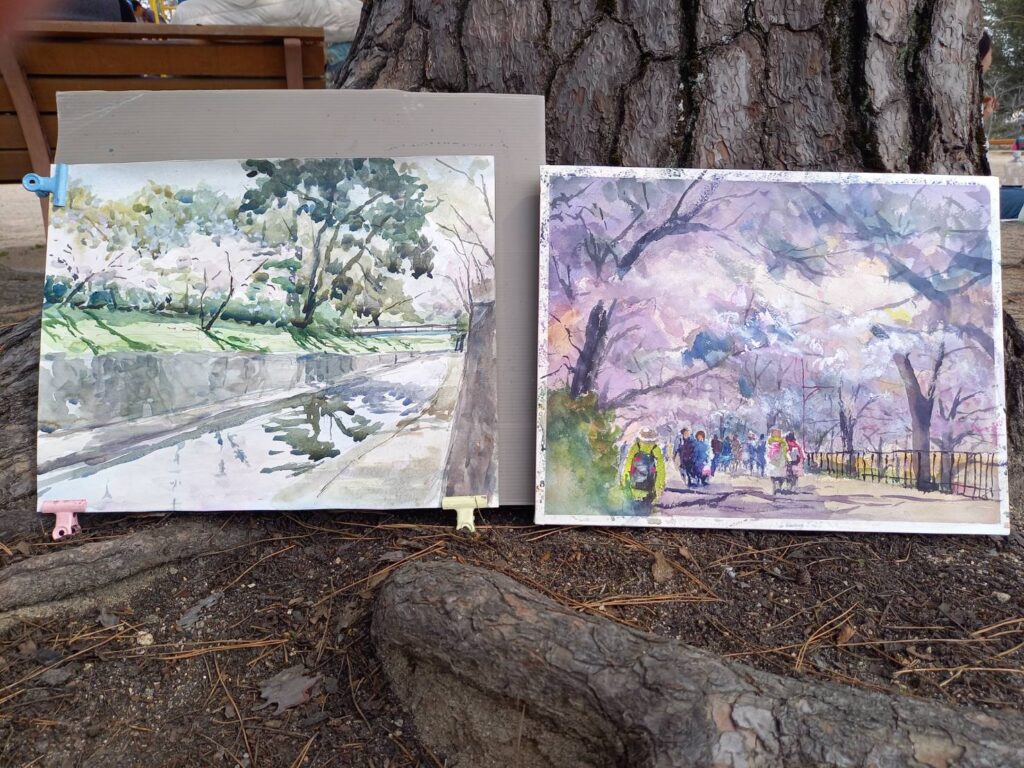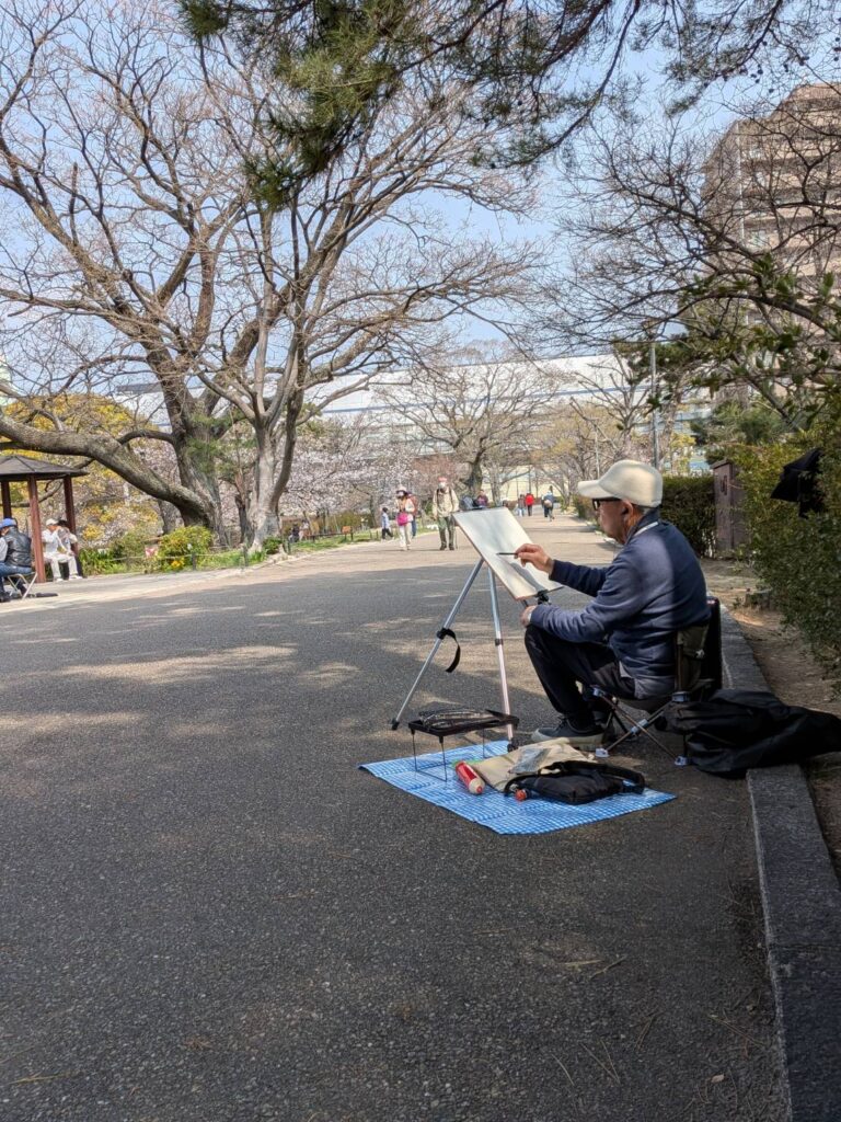 ニ、三日の好天で桜の開花も進み5分咲きと言ったところでしょうか。多くの参加者がここ香櫨園に集まりました。遠くは徳島からもいらしてくださり(2度目)総勢64名。花見客もさほど多くなく、迷惑かけないでスケッチを楽しめました。アドバイザーさんお疲れ様でした。