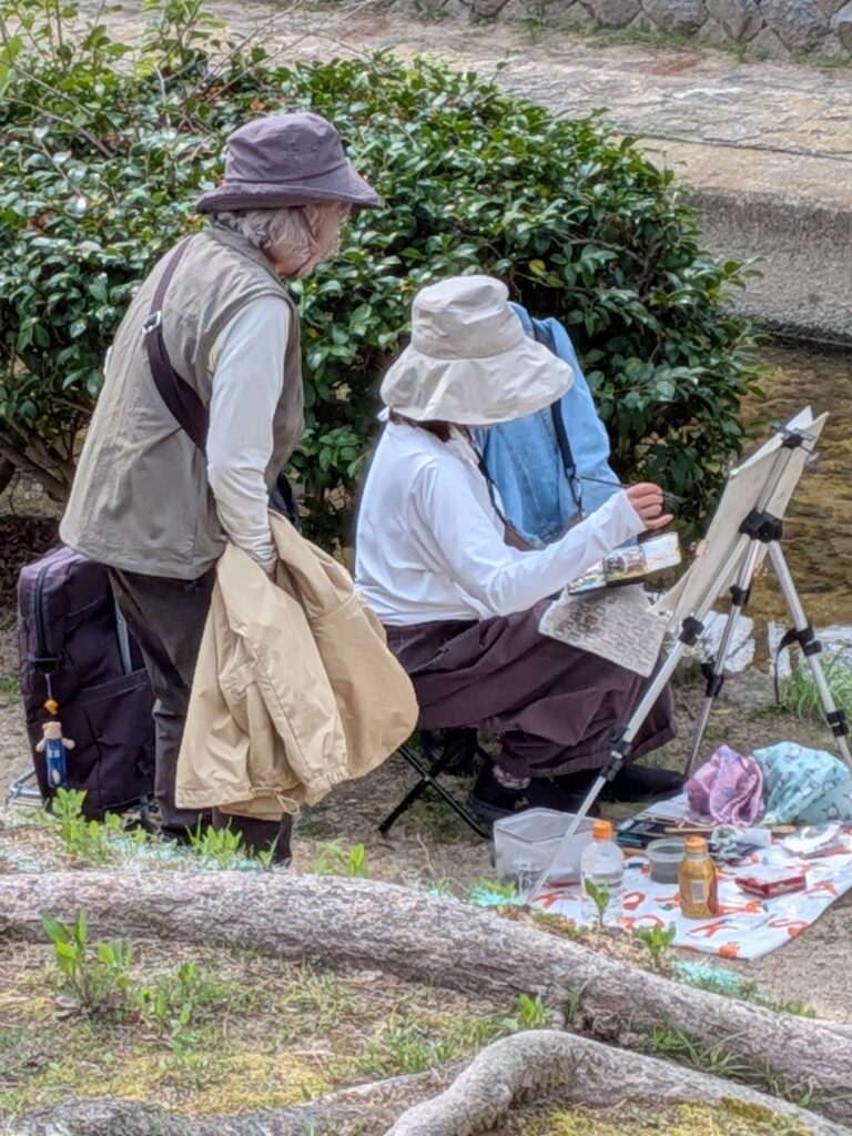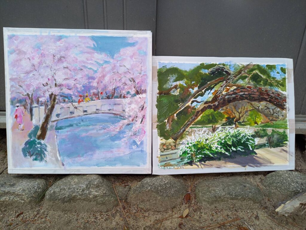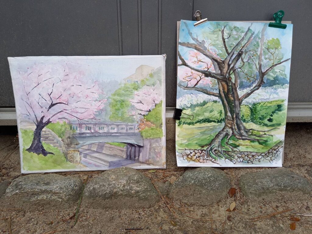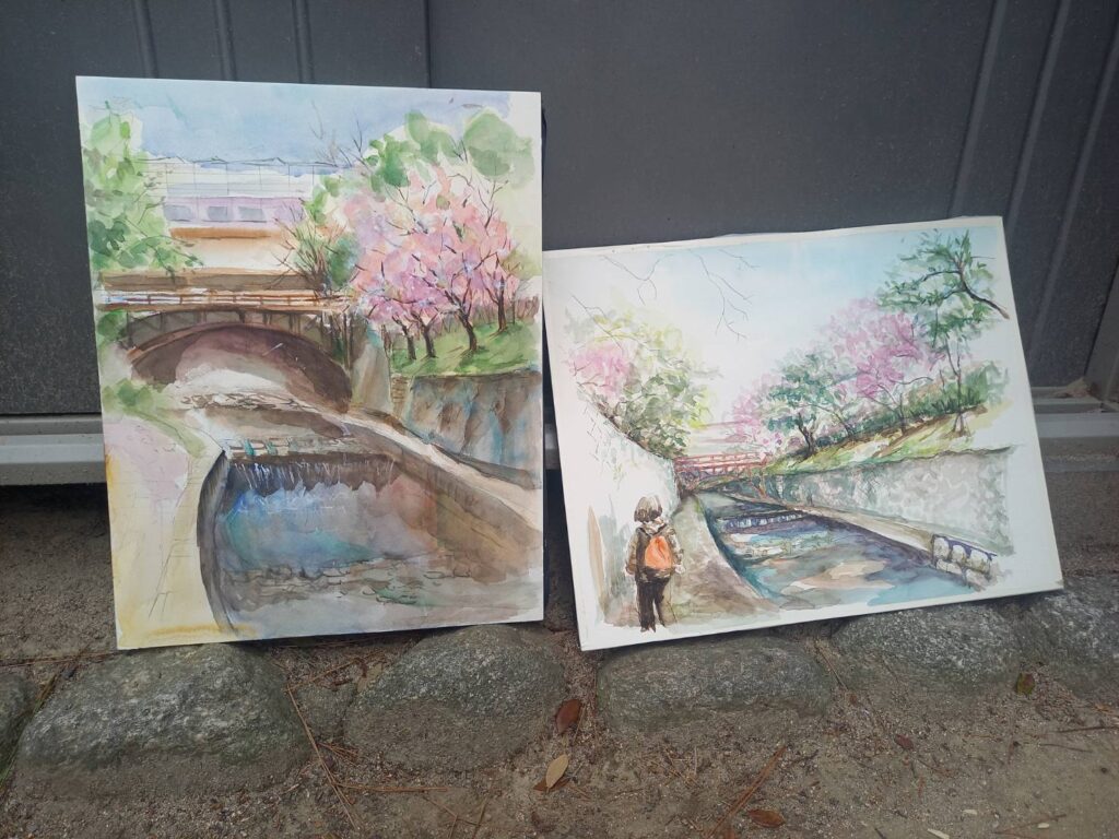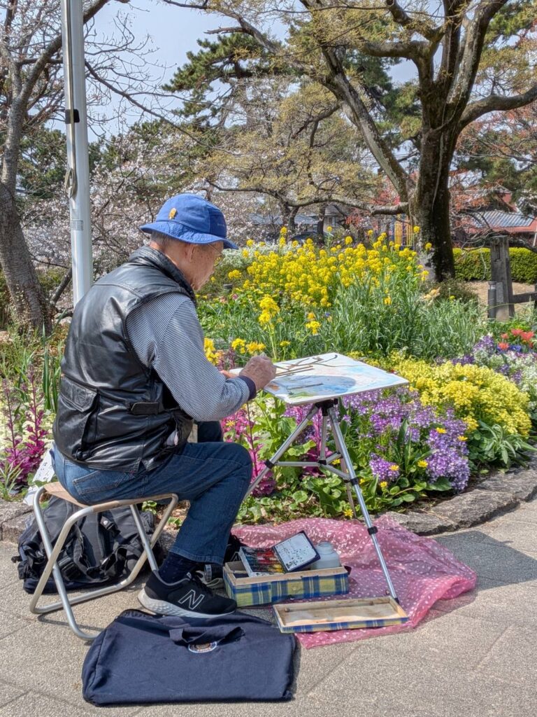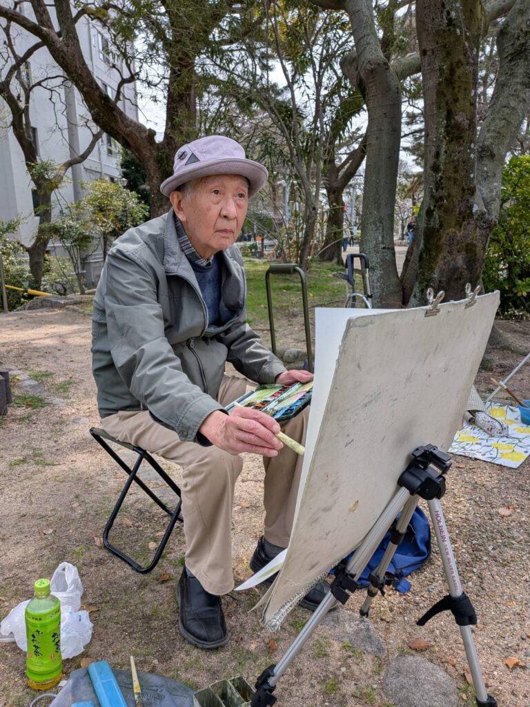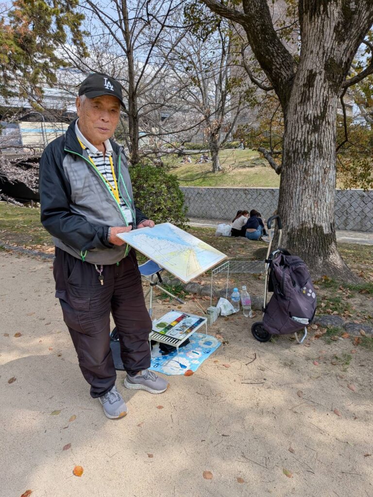 ニ、三日の好天で桜の開花も進み5分咲きと言ったところでしょうか。多くの参加者がここ香櫨園に集まりました。遠くは徳島からもいらしてくださり(2度目)総勢64名。花見客もさほど多くなく、迷惑かけないでスケッチを楽しめました。アドバイザーさんお疲れ様でした。