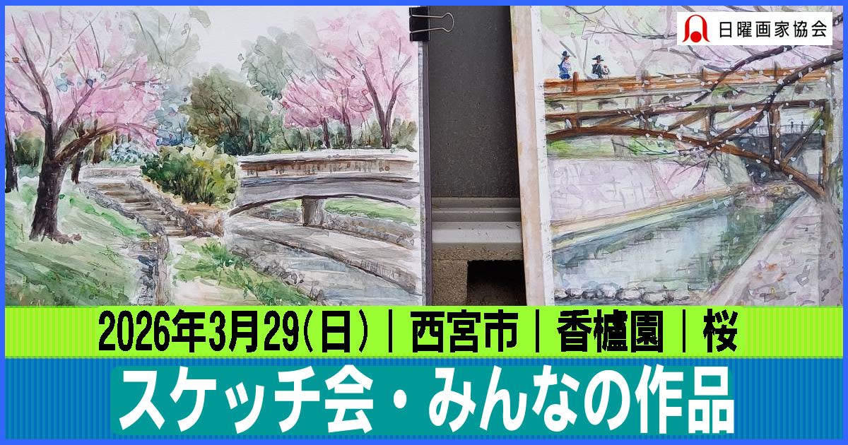 ニ、三日の好天で桜の開花も進み5分咲きと言ったところでしょうか。多くの参加者がここ香櫨園に集まりました。遠くは徳島からもいらしてくださり(2度目)総勢64名。花見客もさほど多くなく、迷惑かけないでスケッチを楽しめました。アドバイザーさんお疲れ様でした。
