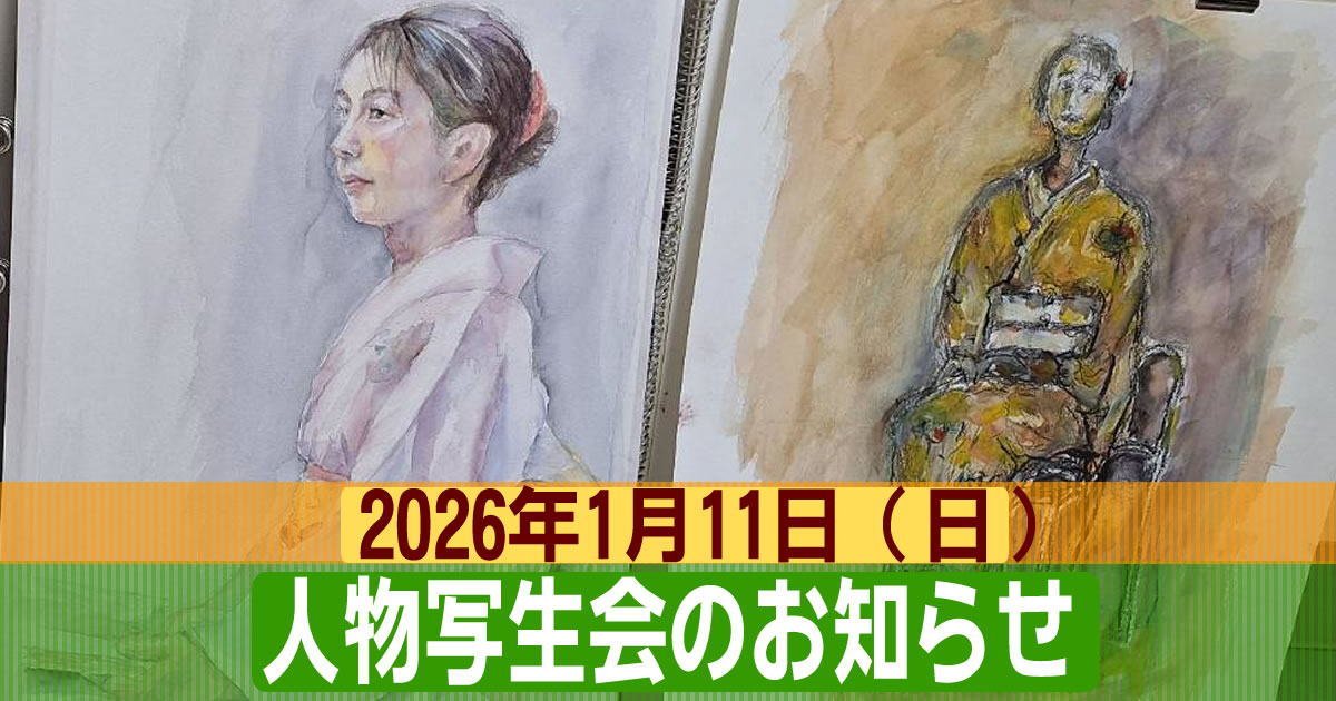2026年1月11日(日)日曜画家協会スケッチ会は「人物画・人物デッサン・人物クロッキー」人物写生会です。画材は、鉛筆、水彩画、パステル画、油絵、などみなさんが描きたい画材をお持ちください。
