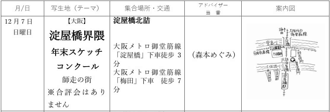 スケッチ会のご案内|2025年12月7日(日)|大阪市|淀屋橋界隈|師走の街|会員限定|スケッチコンクール