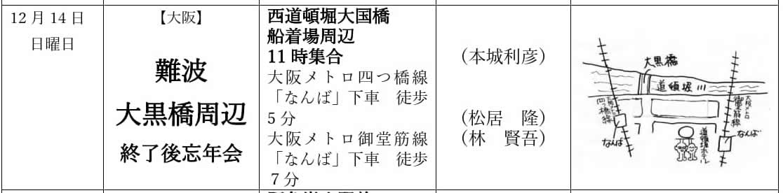 雨天でスケッチが中止になった場合は午後5時に忘年会会場の道頓堀ホテルのロビーに集合してください。